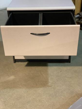 2 Drawer file cabinet. Each drawer holds 2 sections of letter size hanging file folders