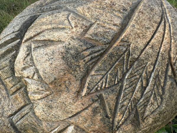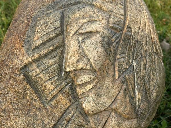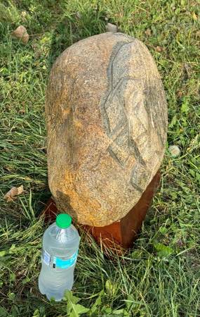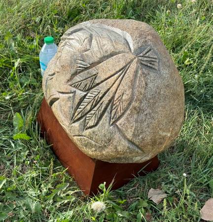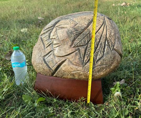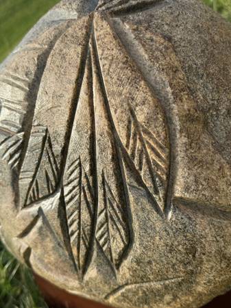 Wow. This one of a kind, signed carved granite rock is AWESOME. Would look great on a mantle, in a man cave, at a cabin…imagine it lit up at night!!! Needs to be carried by two people. Signed on back.