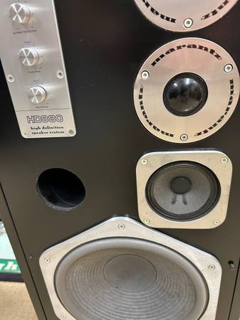 Very nice pair of great sounding vintage Marantz HD 880 speakers. 12” woofer 4 ways. Were one of Marantz’s highest quality. The woofers were just refoamed. Cabinets cleaned up and everything works as should.
