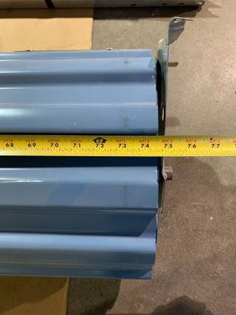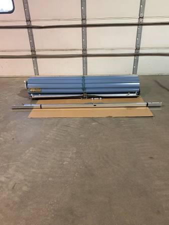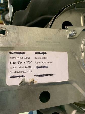 Used Janus Polar Blue 6070 Roll Up Door. Includes rails, handle, door latch and stops. Everything you need. Cash or credit accepted.