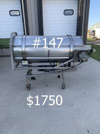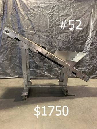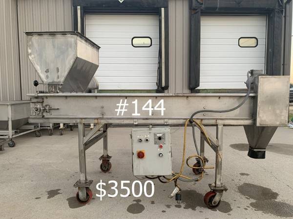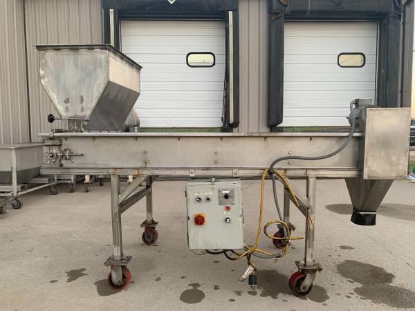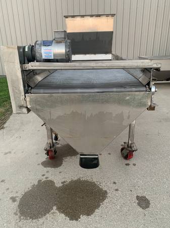 Stainless Steel Conveyors, Augers, Hoppers, Sweco, Trommels, Carts for Sale. Screw Conveyor Approximately 10' Tall, 12' long and 26" wide at the hopper and 24" wide framing.