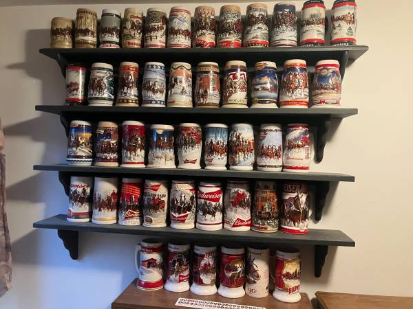 Budweiser Holiday Steins the complete set from 1980 - 2025. I have the original boxes for most of them. Very rare to have complete collection. Some Steins are very hard to find and expensive. Great...
