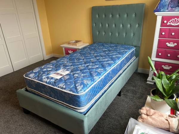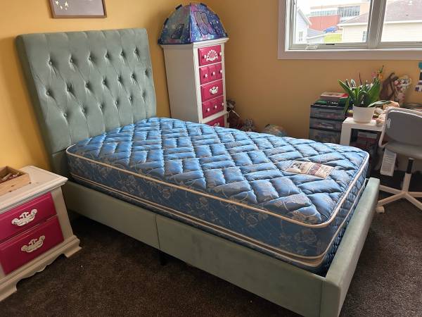 Like new kids pretty headboard, mattress & boxspring! Like new headboard & boxspring. Good used condition: mattress & boxspring.