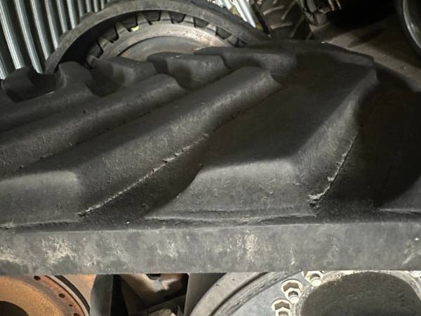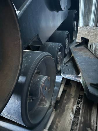 36” wide, 10 bolt hub adaptor. Also comes with mounting kit for John Deere Combines. Good tread. Message me with any questions, thanks!
