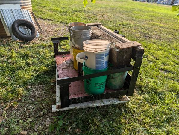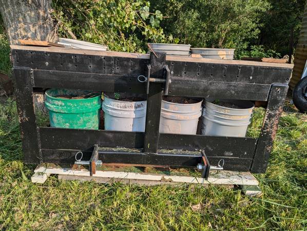 54" x 36" heavy duty angle iron ballast frame for CAT 2 three point ! how much weight do you need ? designed to accommodate 2 - 55 gallon barrels for weight OR whatever you want to carry for ballast. can use for hauling other items as well when empty. Message me with phone number I do not text.