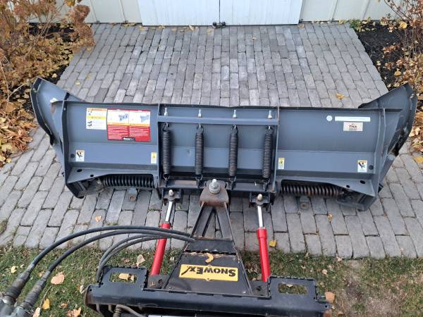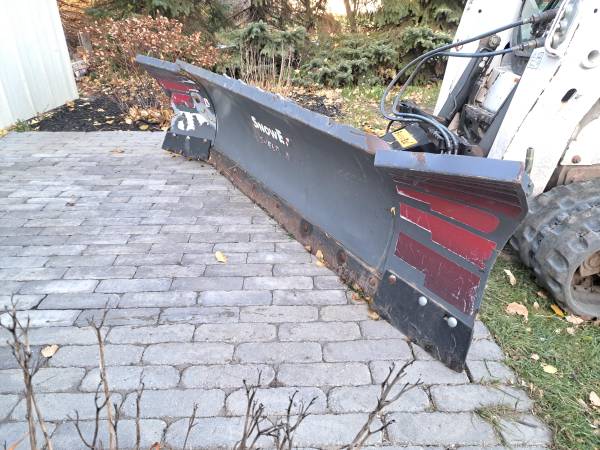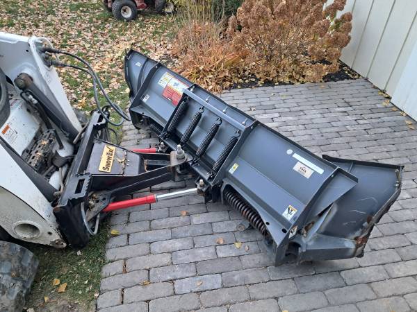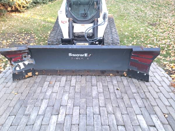 Snow-ex 102" skid steer snow plow Cutting edge has 70% left Automatic tilt wings Full trip moldboard Contact: 701 270 753nine