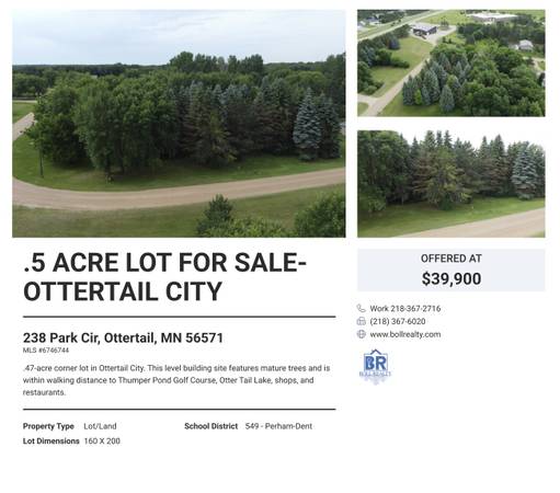 .47-acre corner lot in Ottertail City. This level building site features mature trees and is within walking distance to Thumper Pond Golf Course, Otter Tail Lake, shops, and restaurants.