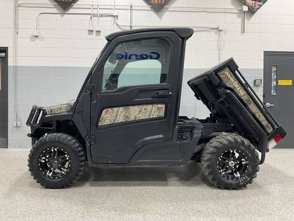 STK# Z0000000000000005514 Used 2019 JOHN DEERE Gator XUV835M Crossover Utility Vehicle, 4WD, Gas, CVT, TrueTimber Camo Finish, Enclosed Cab, A/C, Heat, Pop-Open Windshield, Windshield Wiper, High Mount Air Intake, Front and Rear Guards, Electric Over Hydraulic Dump Bed, Front and Rear Receiver Hitch, Five-Spoke Rims, ATV Tires. Hour meter current at time of listing. Hours are subject to change 1,397.4 hours.