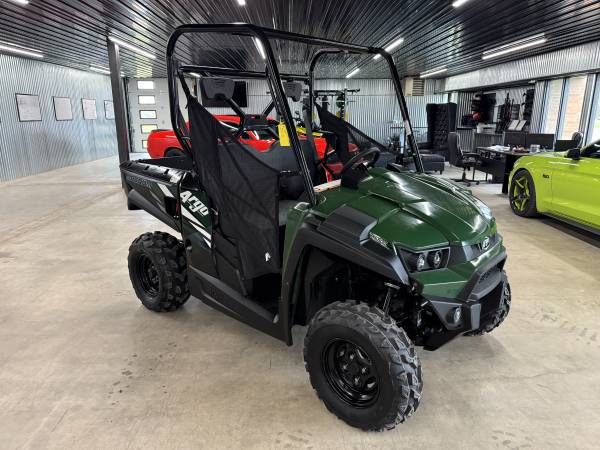 This side-by-side features a dependable 443cc liquid-cooled 4-stroke EFI engine, push-button 2WD/4WD with front differential lock, impressive ergonomics for both driver and rider, steel rims, & painted body plastics. We invite you to come kick the tires on this rugged machine. Just don’t be surprised if it kicks back.