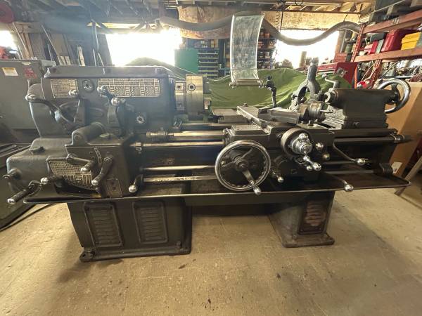 Awesome Monarch Lathe for sale- this is a 1941 Model 12C with an actual swing of 14.5x30” between centers. Has original steady rest and full taper attachment with clamp. Equipped with leadscrew reverse, power feeds and inch threading.