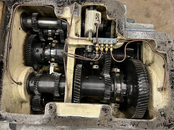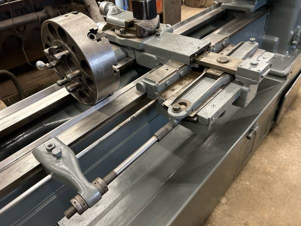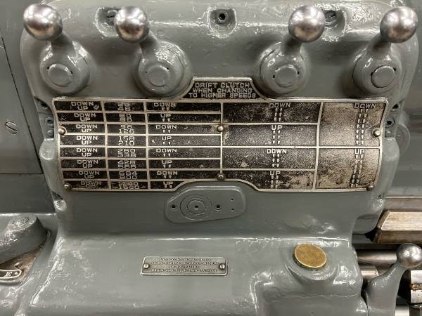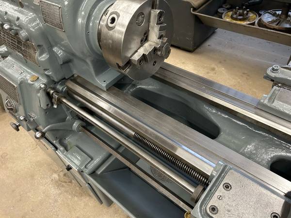 This lathe has just had all the gearboxes flushed and refilled with the appropriate oils. The headstock gears look great and the machine runs smoothly in all speeds and feeds. Dual power feed apron with leadscrew reverse and the rare direct length reading dial.