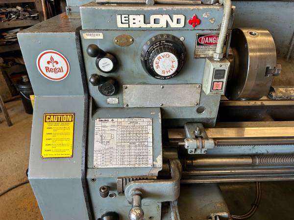 Leblond Servo Shift 15x30” lathe for sale. This machine has spindle speeds from 45-1800 rpm, power feeds, inch metric gearbox, SWI Trak DRO, Cushman 3 and 4 jaw chucks, Aloris BXA toolpost with holder, Jacobs Superchuck, change gears and chuck wrenches.