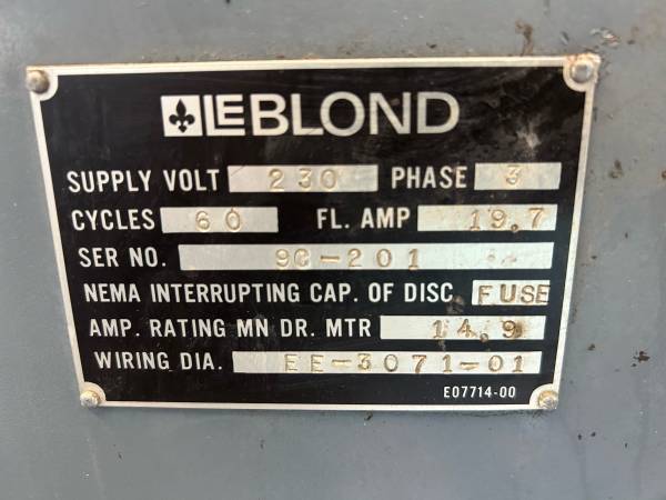 Powered by a 7.5hp motor wired at 230v 3 phase. Spindle hole is 1.5”. Footprint is 76x38” and weight is about 2500lbs.