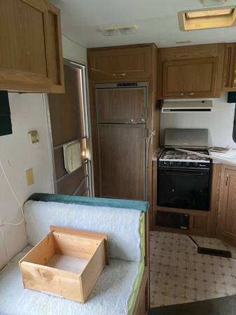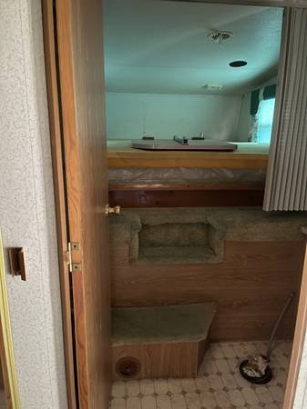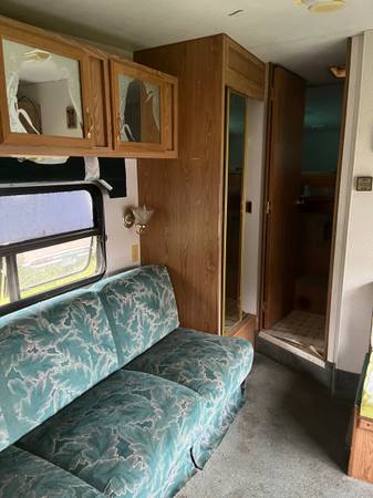 A 1993 24ft Terry Resort 5th wheel camper trailer is available for you to take and set up at your favorite hunting area, so you have a place to stay, and recoup, after a long day out in the bush. Roof looks good, floor is pretty solid, and I built a door for it to keep the chill out. Has a receiver on back to pull your extra trailer along, with your ATV on. No title, but if you wanted it for a camper, you could prolly get one