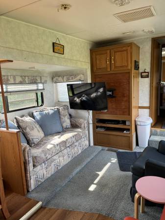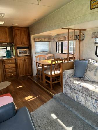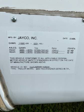 This Designer by Jayco is ready to take you on your camping trips, or become your hideaway at a secluded spot. New flooring in the kitchen/dining area, and also in the bathroom/sink area, it also has a rear kitchen, and a table with four individual chairs . A great opportunity to make the most of the rest of your fall, and furnace and A/C work good! Take a look at the pics and give me a call or text!