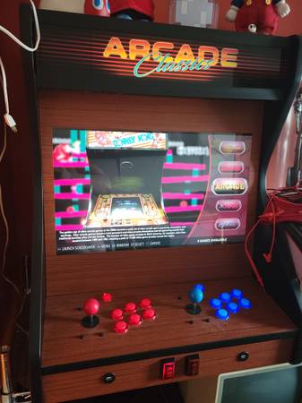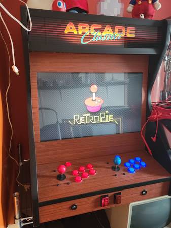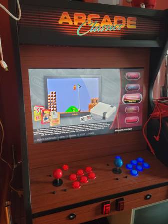 I built this machine using a pie emulator. Running the retropie software this is fully customizable you can pretty much put any game you can think of on here arcade also has two USB ports included are two USB Super Nintendo controllers and Nintendo controllers has Logitech sound system inside with subwoofer. Pretty heavy made for bar top or could sit on a table. Custom vinyl wrapping for wood look professional cabinet. Very very cool machine super fun I would recommend this for someone who is technically inclined that could find their way around configuring button assignments and things like that if you're talking about retropie you know what I mean. Loaded with games already